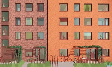 Boliger i kvartalsstruktur i en ny bydel på Vollebekk.