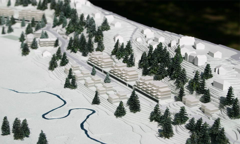 Utgangspunktet var et bratt planområde der utfordringen var å legge til rette for en bygningstypologi som minimaliserer terrenginngrepene samtidig som den tilrettelegger for best mulig bokvaliteter. Hovedtyngden av bebyggelsen er langsgående blokker som ligger tilbaketrukket fra skråningen slik at det etableres tosidige leiligheter samtidig som man naturlig oppnår et planert fellesareal i bakkant. I tillegg til 130 leiligheter i blokkbebyggelse legges det til rette for 36 boenheter i tomannsboliger og rekkehus samt p-anlegg under terreng.